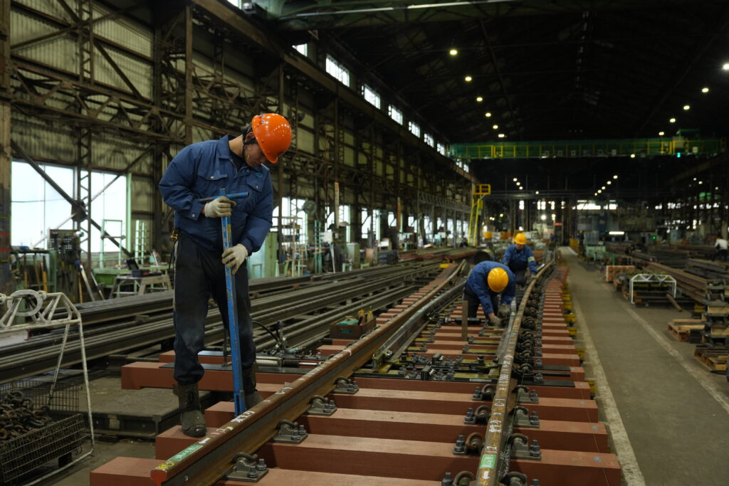 大和軌道製造株式会社は、大和工業グループの創業事業である軌道用品部門を2002年に分社化し発足したメーカーで、駅の手前で列車の進路を変える分岐器(ポイント) をはじめとする軌道用品や新幹線の地震対策用脱線防止ガードを生産し鉄道の安全安定輸送を支えています。